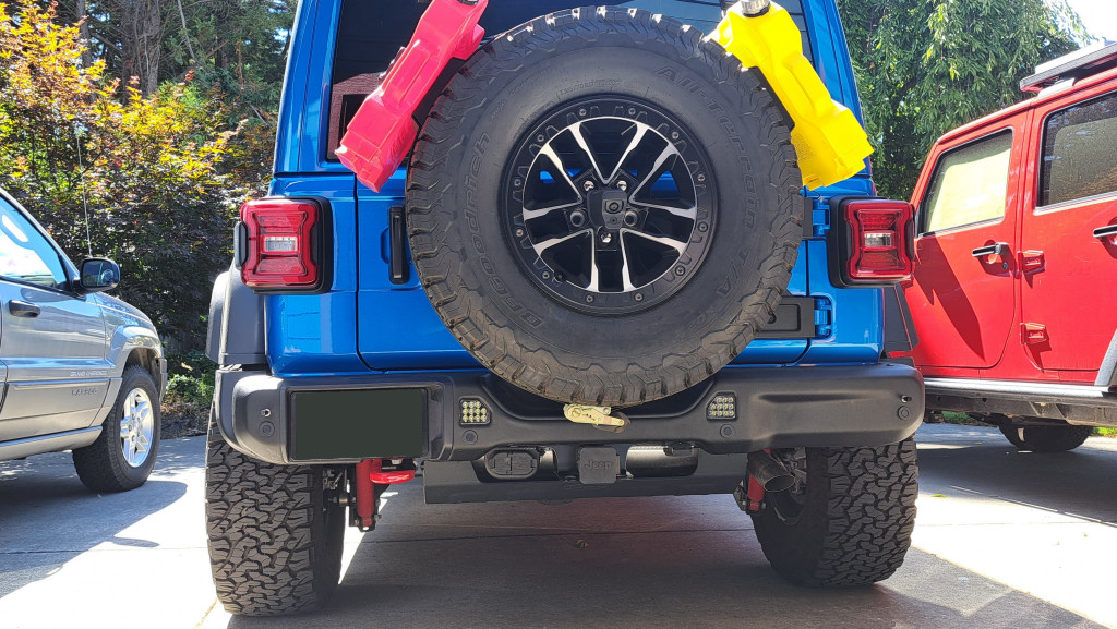 You'll note the red reflectors in the bumper, adjacent to the depression for the spare tire. These are handy, but do nothing when you're trying to hitch or unhitch a trailer in the dark. Hence the project: replace those reflectors with a pair of Oracle Rear Bumper LED Reverse Lights supplied by my favorite off-road aftermarket provider: Quadratec. Those lights throw a flood patter of 1000 lumens of white light, exactly where you need it to illuminate the area between the back of your rig and the front of your trailer. But the installation ... ¡ai chihuahua!